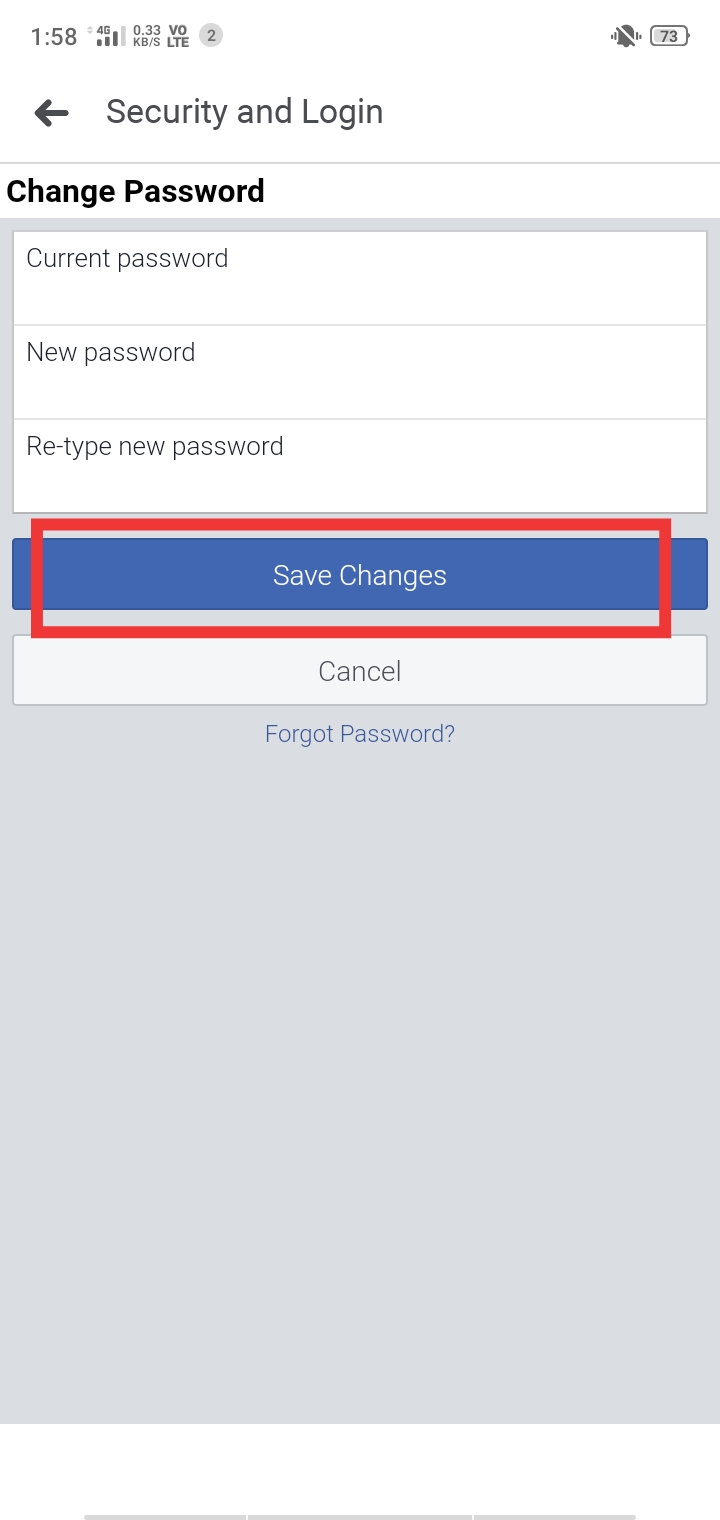 इसके बाद आपको save change पर click कर देना हैं। इस तरह से आपका password change हो जाएगा।