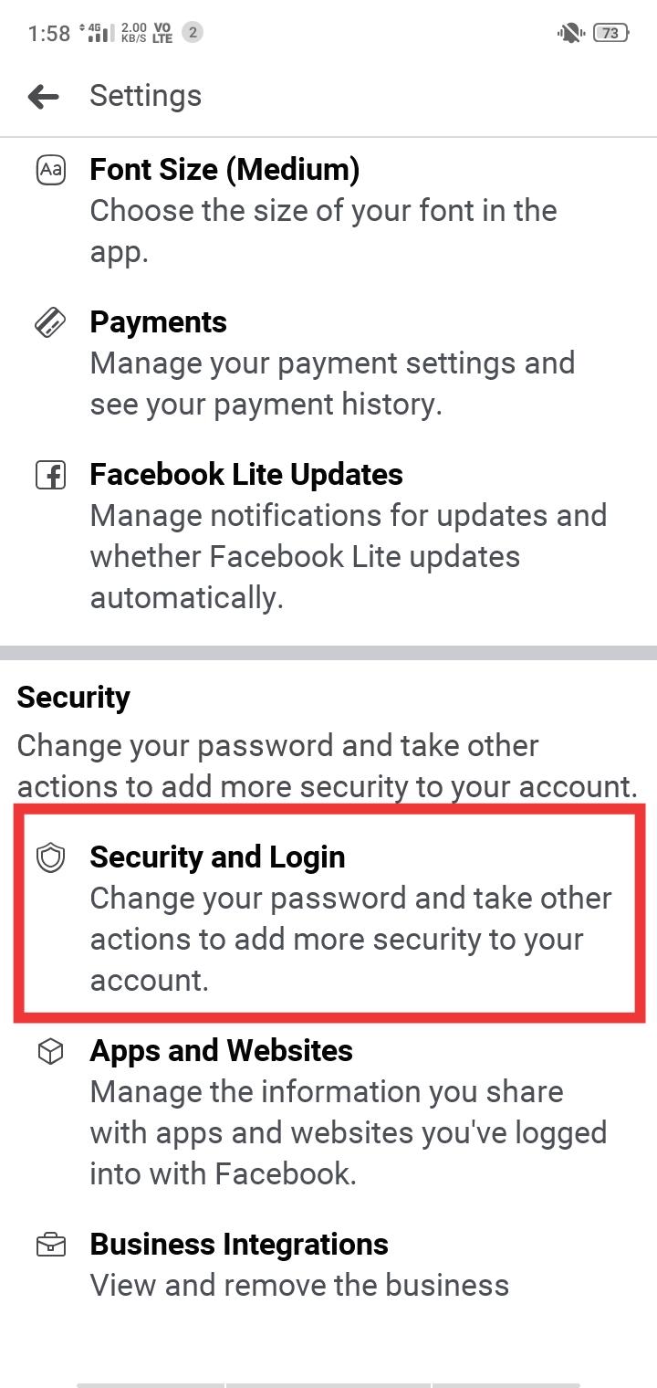 जैसे ही आप settings वाले ऑप्शन पर क्लिक करोगे तो आपके सामने एक नया पेज ओपन हो जाएगा। यहाँ जब आप थोड़ा नीचे जाएंगे तो आपको security and login नाम से एक ऑप्शन दिखाई देगा, आपको उस security and login वाले ऑप्शन पर click करना है।